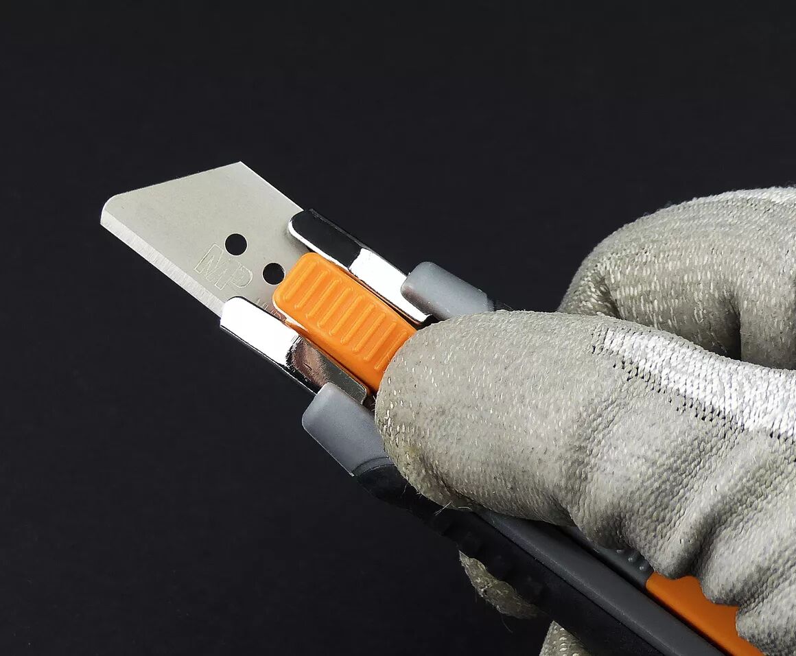 Pour remplacer une lame de cutter en toute sécurité, quelques bonnes pratiques sont essentielles. Tout d’abord, assurez-vous d’utiliser des gants de protection résistants aux coupures et adaptés (ni trop fins ni trop gros). Ces gants permettent de protéger vos mains des risques de coupure pendant toute la durée de la manipulation. Ensuite, choisissez un cutter doté d’un mécanisme de verrouillage de la lame, afin de minimiser les risques que la lame ne se détache accidentellement. Avant de procéder au remplacement, posez le cutter sur une surface plane et stable, et évitez de vous précipiter : prenez le temps nécessaire pour assurer une manipulation en toute sécurité. Enfin, jetez les lames usées dans un conteneur prévu à cet effet pour éviter que quelqu'un ne se blesse par inadvertance.