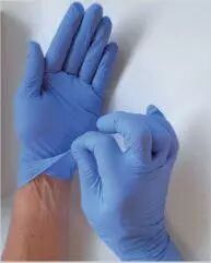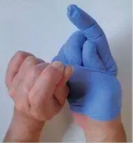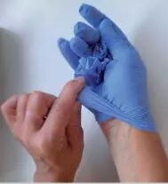 Par le bord de la manchette saisir le gant restant avec la main nue